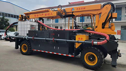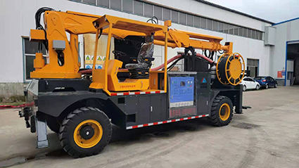混凝土濕噴臺車包括液壓噴射機(jī)械手、噴射機(jī)(泵)、外加劑及其添加設(shè)備和電纜卷盤、空壓機(jī)等,都安裝在同一機(jī)械底盤上,是一臺集混凝土泵送、外加劑添加、混凝土噴射等多項(xiàng)作業(yè)于一體的組合設(shè)備。混凝土濕噴臺車的各組成系統(tǒng)在整體設(shè)計上統(tǒng)一考慮了其布局的合理性,做到了易于維修,并具有易于清洗的特點(diǎn)。